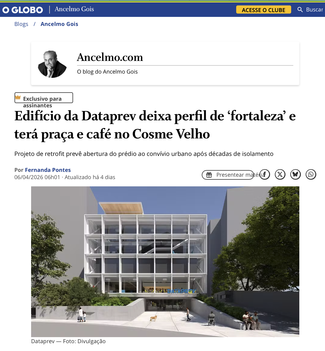 Publicado no Jornal O Globo, em 06/04/2026.